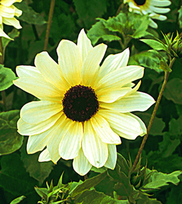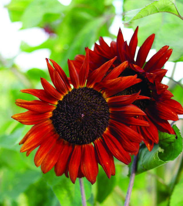 ’Ruby’ F1 är en eldigt mörkröd solros med lite mindre blommor som blir upp emot 2 meter hög. Ungefär lika hög, men med ännu mindre blommor i vaniljgult, är sorten ’Ice Cream’.