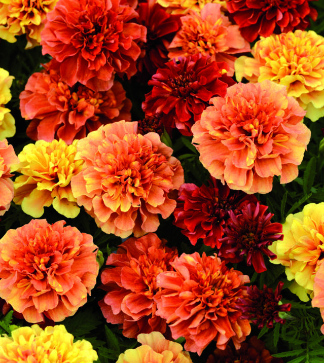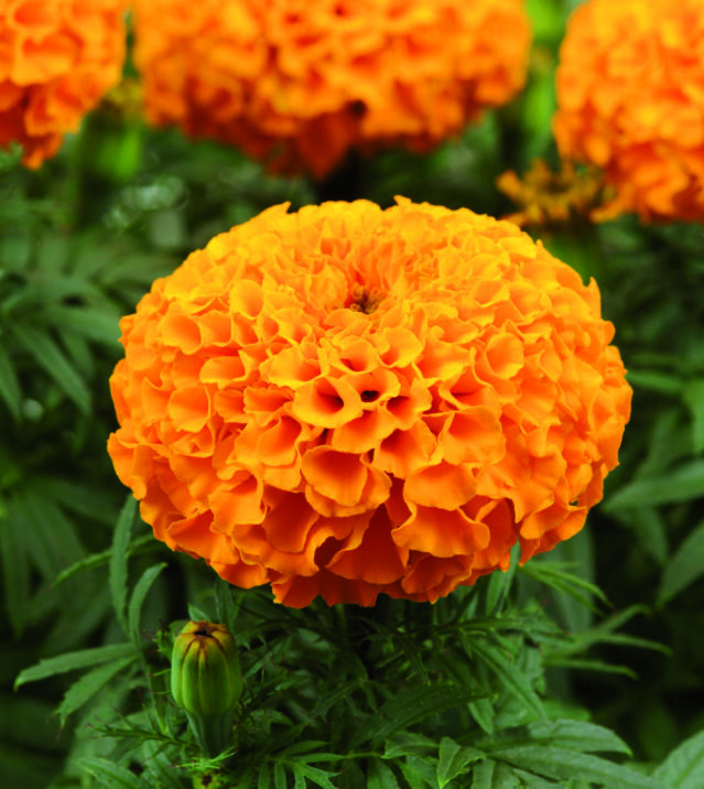 ’Taishan Orange’ är en robust tagetes som är fin att kombinera med gräs och högväxande liljeväxter. Foto: Annika Christensen
