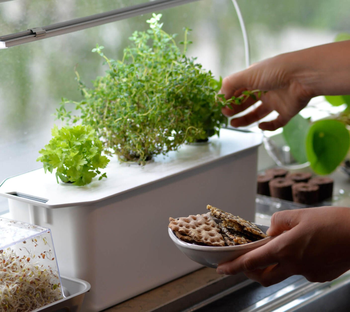 Olivia Hedman @oliviahedmaan – Oliva lockas av tanken att kunna skörda inomhus trots den begränsade ytan i sin lägenhet. Dessutom har hon Oscar Zias odlingar som målbild – vi är övertygade om att hon kommer att lyckas!