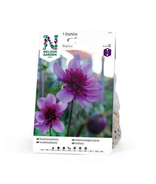 En anemondahlia vars öppna blommor lockar bin och fjärilar. Skirt ljuslila, nästan lavendelfärgade, yttre kronblad runt en fluffig vinröd mitt är en läcker färgkombination. Passar även till snitt.