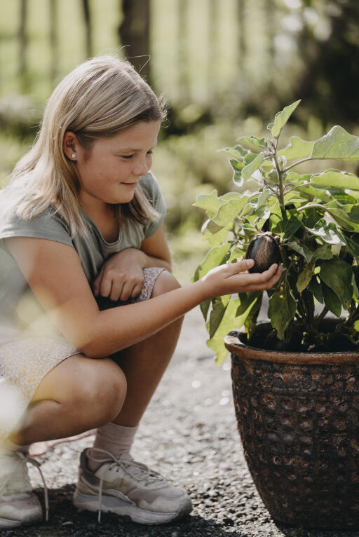 Avlånga, mörkt violetta frukter med delikat smak. Odlas lämpligen i växthus eller utomhus i mycket skyddat läge. Skörda drygt 5 mån. efter sådd. Trivs i näringsrik och väldränerad jord. Vattna regelbundet.