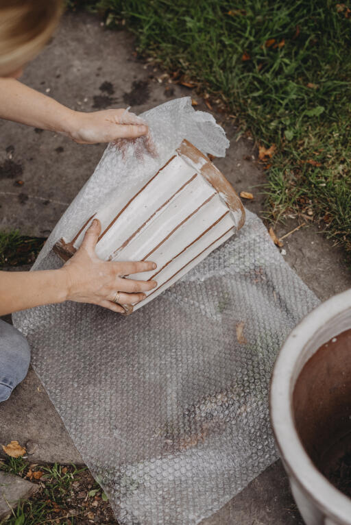 Ullmatta som skyddar växterna från uttorkning, ogräs, kyla och vatten.