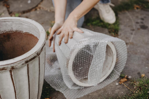Bubbelplast är ett lätt och värmeisolerande material som kan användas till såväl isolering som emballering. Material: Polyeten.
