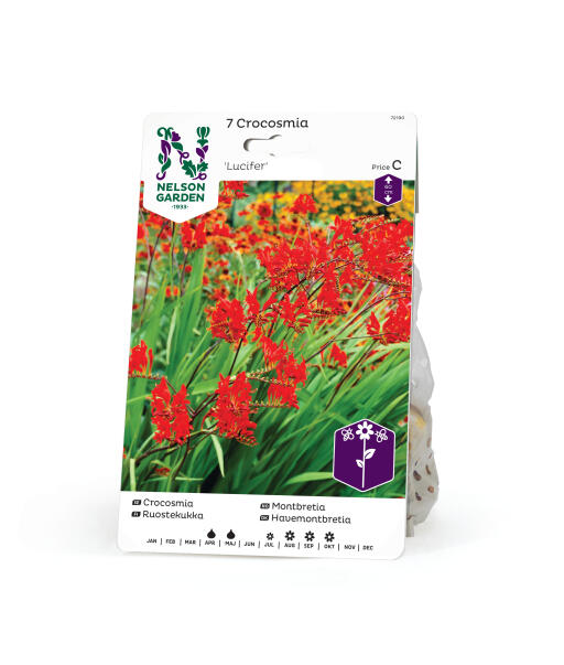 Mycket vacker växt med exotiskt utseende. Rödorange blommor utmed 60 cm höga, bågböjda stänglar på sensommaren. Till blandade rabatter med god trädgårdsjord. Väldigt fin i buketter.
