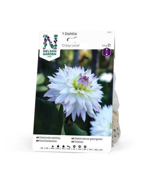 En synnerligen odlingsvärd dahlia med stora, vita blommor med skimrande rosa inslag. Medelhögt, stadigt växtsätt gör den perfekt i blandade rabatter ihop med perenner och sommarblommor. Även bra i kruka.