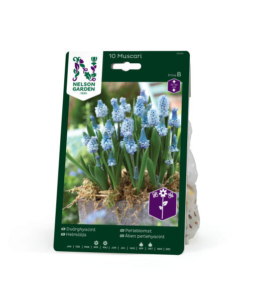 Denna lättodlade och doftande lilla pärlhyacint återkommer gärna år efter år. De ljusblå blommorna har en skir, vit kant och beundras med fördel på nära håll. Perfekt i kruka och rabattkant och helt ljuvlig i små bordsarrangemang.