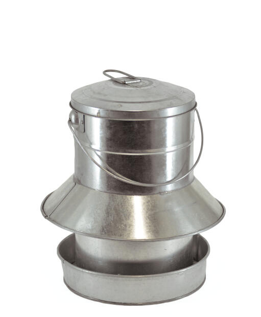 Rymlig fågelmatare för fågelfrö. Av galvaniserad plåt och försedd med skärm som skyddar maten mot väta och stora fåglar. Fylls på uppifrån genom det avtagbara locket. Bygel för upphängning. Rymmer hela 9,5 liter fågelmat.
