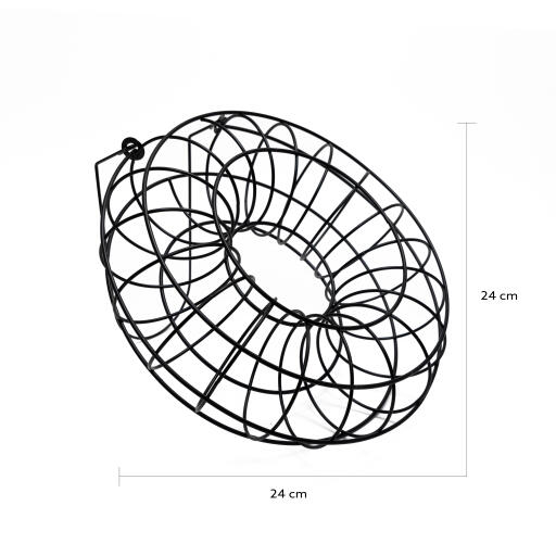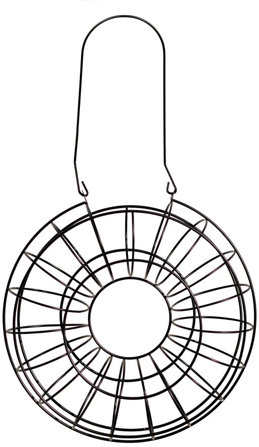 Dekorativ och funktionell fågelmatare för 90 g talgbollar. Fylls enkelt på via hål upptill. Kan även användas till äpplen. Metall. Ø 24 cm