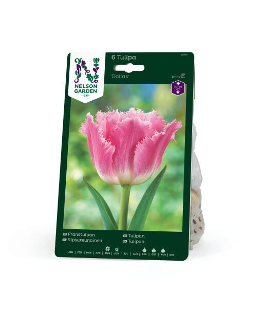 Kronbladen är vackert rosa med vit bas och de något ljusare, fransiga kanterna ser nästan ut som skir spets. Ett par 'Dallas' i den rosa buketten blir verkligen pricken över i. En fantastisk snittblomma som håller länge.