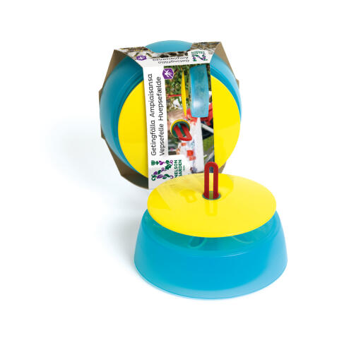 Om getingar: Getingar är nyttiga djur! Under vår och försommar matar de sina larver med insekter och befriar oss då från en mängd skadedjur i trädgården. Vuxna getingar livnär sig på nektar och besöker gärna rosväxter, flock- och korgblommiga växter. De pollinerar alltså många av våra vanligaste frukt- och bärväxter, t.ex. äpple, päron, plommon, körsbär, jordgubbar, hallon och björnbär. Det är först på sensommaren, när getingarna behöver ren energi och söker sig till våra sötsaker, som de kan bli ett problem. Och då kan fällan hjälpa till att ta bort dem. Om getingfällan: Den här getingfällan kan användas om och om igen. När getingarna blir besvärande under sensommaren fylls den med en blandning gjord på socker, torrjäst och kallt vatten. Doften lockar getingarna till fällan, de kryper in men kan inte ta sig ut utan drunknar. Fällan töms, fylls med nytt lockmedel och är klar att använda på nytt. Fakta: Fälla mot getingar. Tillverkad av ABS-plast och polypropen. Behållaren kan maskindiskas. Mått: 18 x18 x13,5 cm.