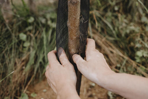 Skonsamt plastnät som skyddar trädstammar. Nätet öppnar sig allt eftersom trädet växer. Höjd 80 cm.