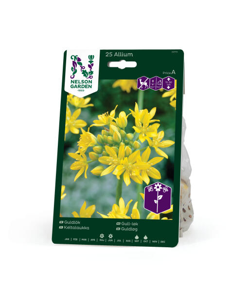 Guldlök har små, guldgula blommor som sitter i en 6-8 cm bred blomställning. Passar i t.ex. stenpartiet, rabatten och intill buskar. Anses verka avvisande på sork och mindre smaklig för rådjur, hare och kanin.