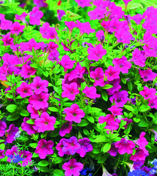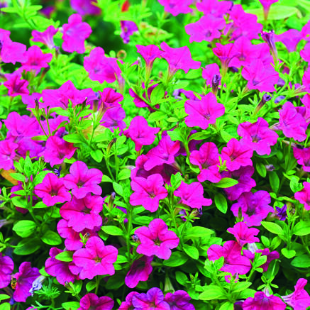 Hängpetunia är en vacker och frisk sommarblomma. Den är underbar med sina långa rankor fulla av blommor. Sätt den i en ampel eller kruka och låt den svämma över kanterna och bilda en stor blomsterboll. Petunia får sällan sjukdomar och är torktålig. När jordytan börjar torka till, vattna den rejält. För att orka blomma hela sommaren behöver den gödslas regelbundet under blomningstiden. Knip av vissna blommor för att stimulera till mer blombildning på plantan. Hängpetunia 'Showers Burgundy' blommar som mest när den står soligt och vindskyddat.