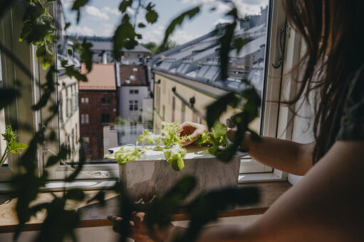 Mitt bästa tips för att lyckas med odling i Harvy är att placera den ljust. Under sommarhalvåret står min odling i ett fönster som vetter mot söder, och från september till mars använder jag växtbelysning. En ljuskälla är avgörande för att få starka, välmående plantor som ger riklig skörd. Med en hängare med sugproppar kan du justera höjden allt eftersom plantorna växer. En bra regel är att ha belysningen ungefär 10 cm över plantorna. Precis som för oss människor behöver växterna vila på natten, därför stänger jag av lampan på natten för att ge växterna cirka åtta timmars vila. Om du vill göra det extra enkelt för dig själv kan du använda en timer för belysningen. När jag sår sallat och kryddor brukar jag så cirka tre frön i varje odlingsplugg. Att kunna skörda stora, färska blad av sallat och kryddväxter året runt är verkligen fantastiskt.