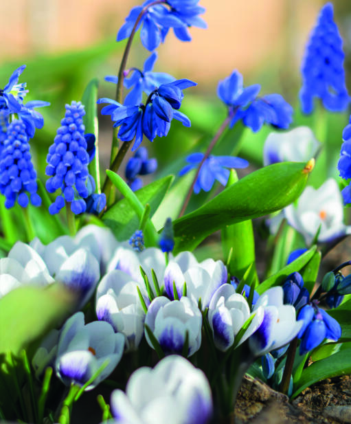En stolt pärlhyacint, en frissig scilla och en mjukt rundad krokus. Det blir en riktigt söt vårbukett i blått och vitt med inslag av violett. Passar för rabattkant, korg och kruka, men även i den första lilla vasen om våren.