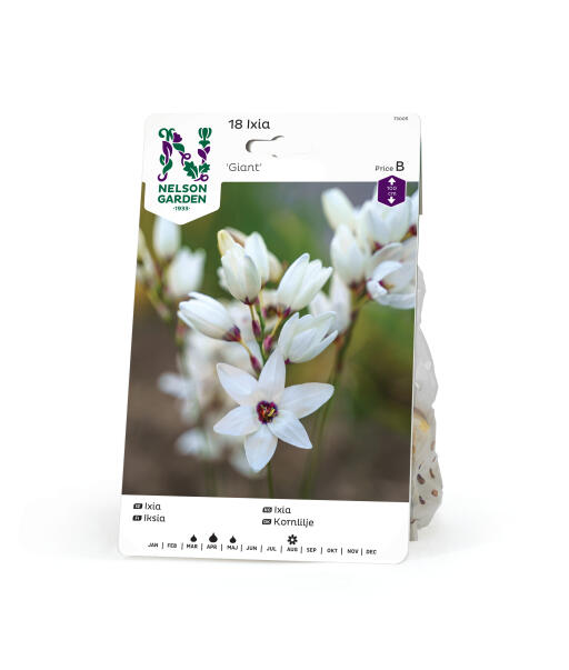 Med sin nätta höjd passar Ixia perfekt i rabattkant eller kruka på balkongen. De skira, klockformade blommorna sitter på långa stjälkar vilket gör den till en fin snittblomma.