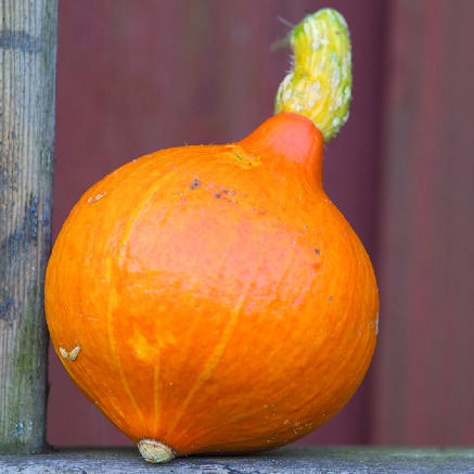 Ekologiskt frö. Pumpa med runda, orange-röda frukter och gult fruktkött. Halvmogna frukter passar till inläggning, medan en pumpa som ska lagras måste vara mogen vid skörd. God att äta ugnsrostad.