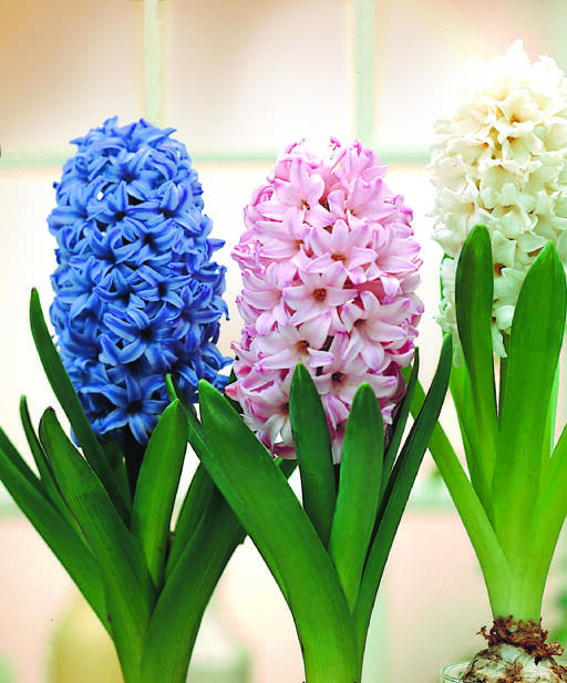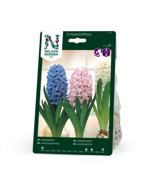 Hyacinter - dessa ljuvligt doftande lökväxter! Fin blandning där blommorna är i rosa, benvita och blå nyanser. Dessa lökar är stora och lämpliga för inomhusdrivning till jul.