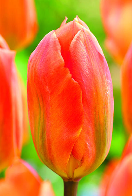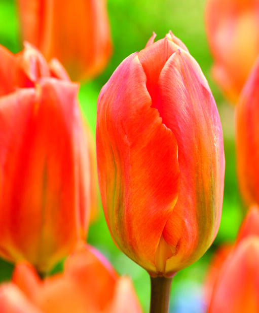 'Orange Emperor's stora avlånga blommor är lysande morotsorange med gul bas. Passar förutom i rabatten även bland buskar. Sorten tillhör Fosteriana-gruppen och kan bli långlivad i trädgården. Mycket bra som snittblommor.