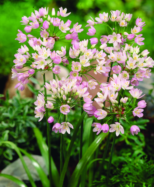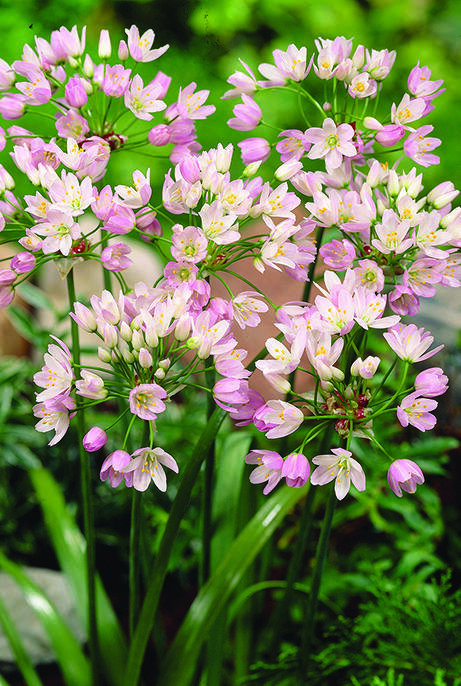 En allium vars ljusrosa, romantiska blomställningar skapar ljuva blomsterbuketter. Anses vara mindre smaklig för rådjur, hare, kanin och sork.
