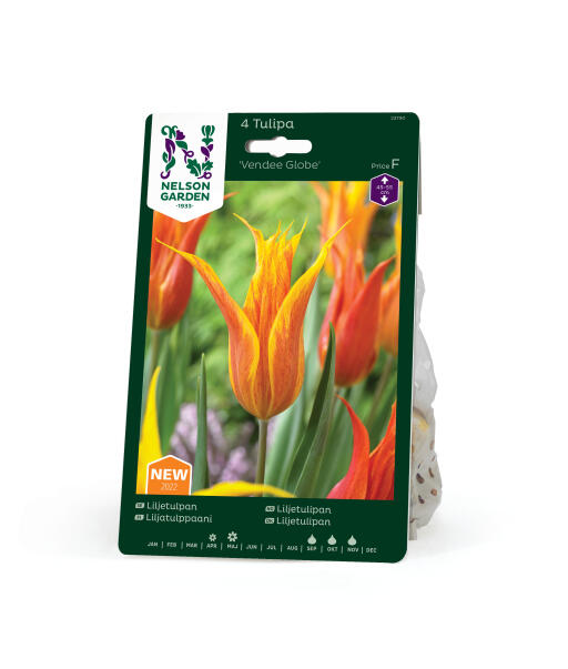 Som brinnande facklor lyser denna eleganta tulpan upp i rabatten. Varje blomma har ett unikt mönster av orangeröda flammor på gula, spetsiga blomblad. Plantera i stora grupper för en spektakulär effekt. Även bra som snittblomma.
