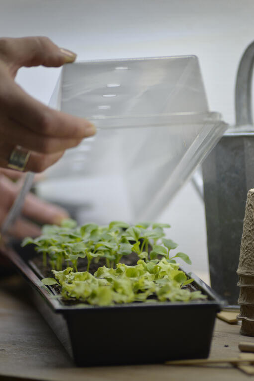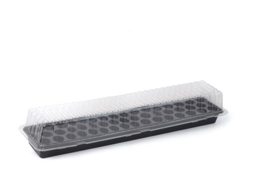 Stabilt minidrivhus med mått för fönsterbrädan. Tre praktiska minipluggbrätten (av PS) ingår. Utmärkt till förodling. Botten av återvunnet material, PP. Lock av PET. Svart. 14 x 68 cm