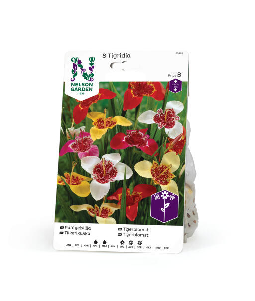 Den stora triangulära blomman är verkligen speciell med sin anslående fläckade mitt. Passar utmärkt i rabatten som färgpalett, och även i krukor. Läcker tillsammans med sommarblommor och andra sommarblommande lök- och knölväxter.