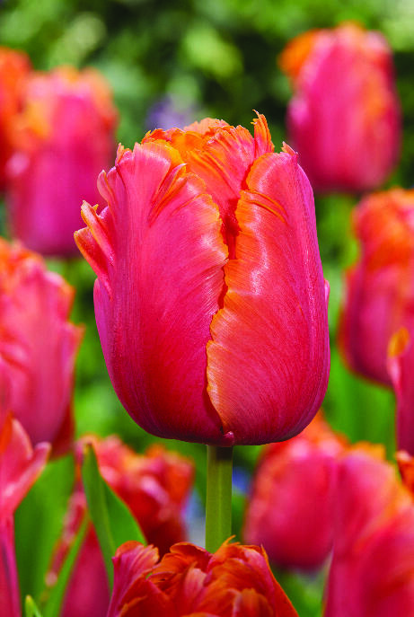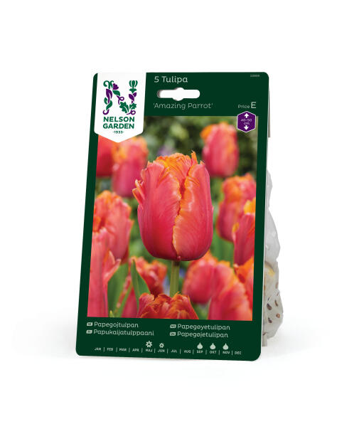 Den officiella beskrivningen av denna exotiska tulpan sägs innehålla hela tio nyanser, allt från violett till gulorange och aprikosrosa. Ingen blomma är den andra lik. Hög på stadig stjälk blir den ett spektakulärt inslag i rabatt och vas.