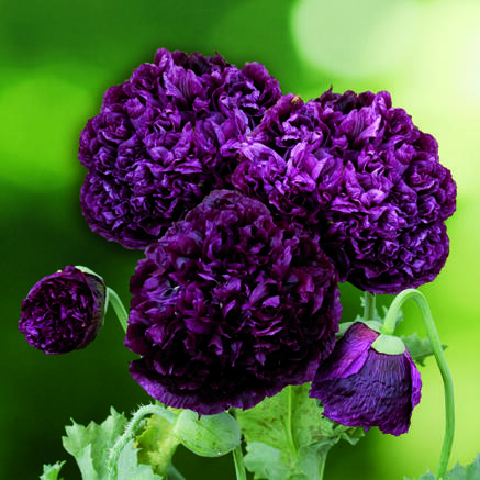 Pionvallmo 'Black Peony' är en underbart läcker sommarblomma med stora, mörklila blommor. Blommorna är fyllda och lika pioner, liksom namnet skvallrar om. Sorten blir 70 cm hög och blommorna sitter som fluffiga moln ytterst på varje ljusgrön stjälk. Pionvallmo är lika fin i rabatten som i buketten och den dekorativa frökapseln kan, med fördel, torkas och användas som eternell. Kapseln plockas då medan den fortfarande är grön men fullt utvecklad. Upprepa gärna sådden flera gånger under säsongen för längre blomning. Pionvallmo sås direkt på odlingsplatsen och trivs i de flesta jordar. Vackrast blir den i soliga lägen. Sorten kan sås både höst och vår. Vid höstsådd blommar den tidigt året därpå. Pionvallmo älskas av trädgårdens pollinatörer.