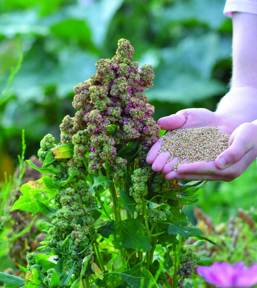 Glutenfri och näringsrik ört. Lättodlad men något frostkänslig vid blomningen. Skörda då fröerna ser välutvecklade ut och låt torka. Låg saponinhalt. Skölj fröerna noga före kokning. Trivs bäst i en näringsrik, lucker, fuktighetshållande och väldränerad jord.