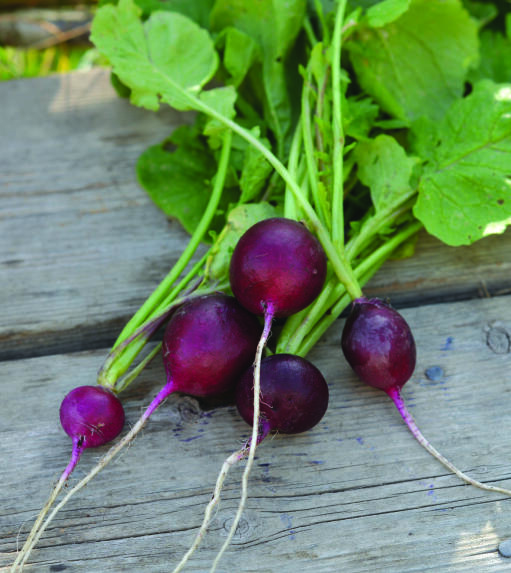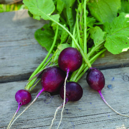 Lila rädisa med vitt och krispigt kött. Ger snabbt skörd. Så med några veckors mellanrum för att få jämn tillgång på späda rädisor. Undvik sådd under tidig sommar då plantan lätt kan gå i blom. Täck gärna med fiberduk som skydd mot insekter.
