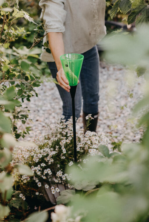 Håll koll på hur mycket det regnar med en klassisk regnmätare. Regnmätaren Cone är 80 cm hög och blir ett snyggt tillägg i rabatten. Den mäter upp till 50 mm nederbörd.