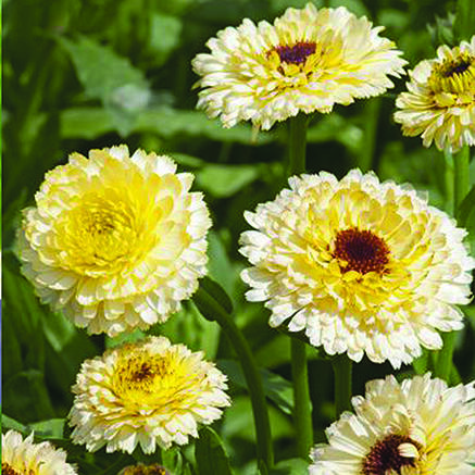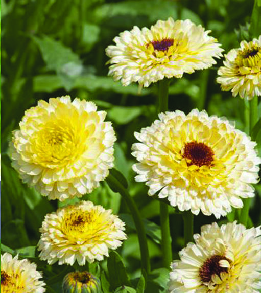 Dubbel ringblomma i ljusgula nästan vita toner. Mitten är mörk eller cremefärgad. Blombladen går att äta, dekorativa i sallader. Trivs i näringsrik och väldränerad jord, men är anspråkslös.