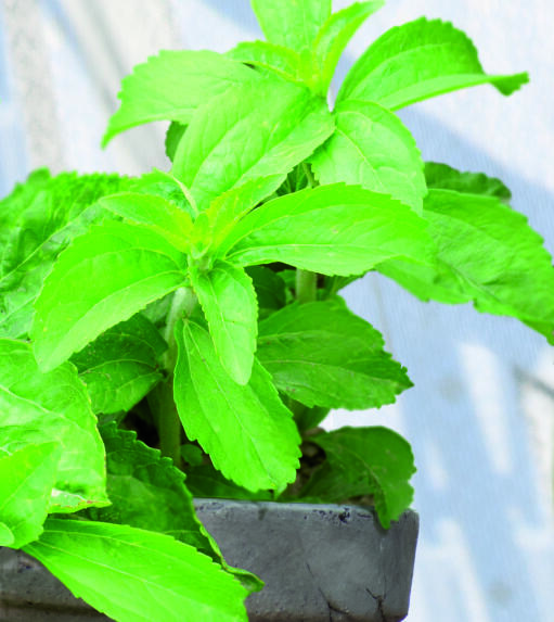 Dekorativ bladväxt som odlas i kruka, såväl inom- som utomhus. Växten har sitt ursprung i Sydamerika. Där användes de små bladen till naturligt sötningsmedel.