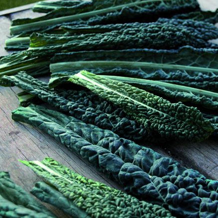 Dekorativ palmkål med långa smala blad. Kan stå kvar på växtplatsen under vintern, smakar bäst efter några frostnätter. God i gratänger och pastarätter.