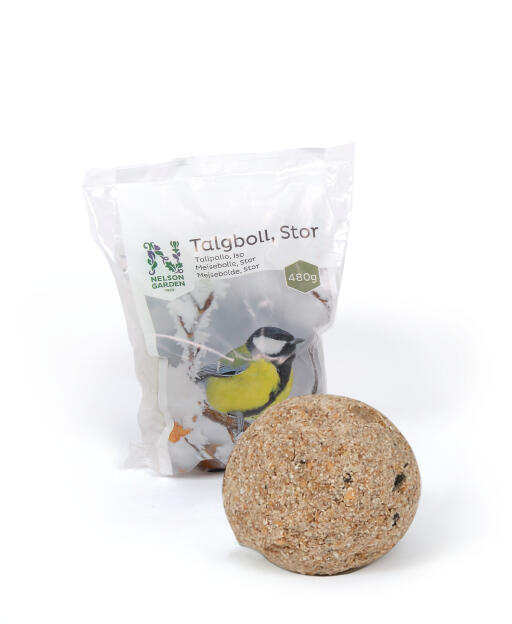 Energirik talgboll för utfodring av vildfågel. Innehåller fetthaltiga fröer, talg och spannmål.