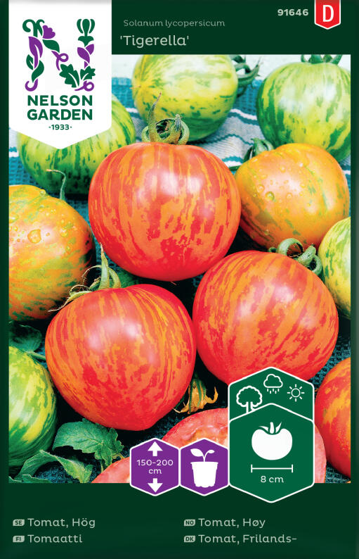 Sort som ger tidig skörd av röda tomater med gyllene strimmor. Plantera ut först när nattemp. överstiger 8°C. Plantan behöver stöd och skotten i bladvecken, "tjuvarna", ska tas bort.