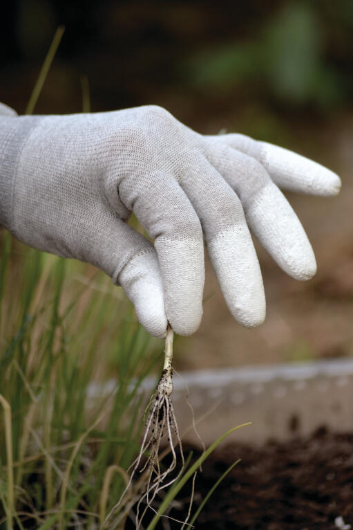 Tunn och smidig handske för finare och lättare trädgårdsarbete. Lämplig för att skörda grönsaker och blommor. Av nylon och kolfiber, doppad i polyuretan (PU).