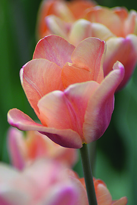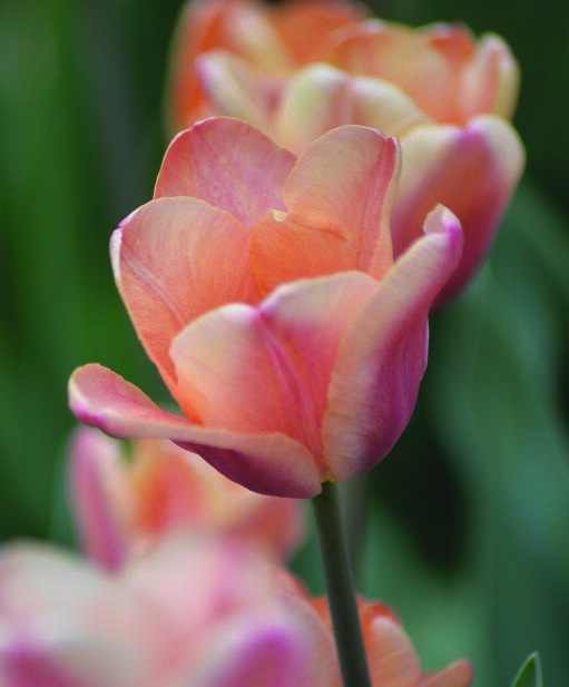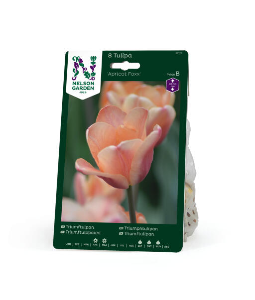 En läckert aprikosfärgad tulpan med inslag av rosa. Färger som intensifieras när blomman mognar men som också kan intensifieras eller dämpas beroende på om våren är kylig eller varm. Fantastisk i kombination med mörka tulpaner.