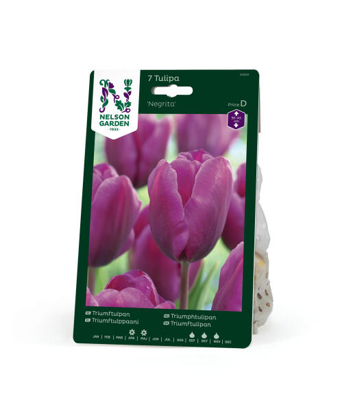 Blombladen hos denna tulpan flammar i purpurlila. Karaktäristiskt för triumftulpanen är den stadiga blomstjälken och den vackra blomformen. Blommorna brukar stå länge. Mycket bra som snittblommor.