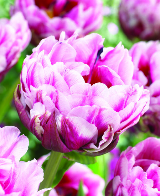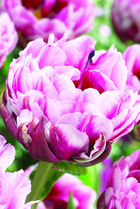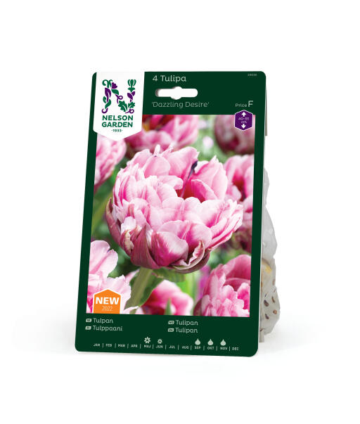 Låt dig bländas av en riktig skönhet! Denna pionlika tulpan med sina stora, fylliga blommor drar garanterat till sig uppmärksamheten i rabatten. Blombladen skiftar från purpur till svagt rosa med en nästan vit yttre kant.