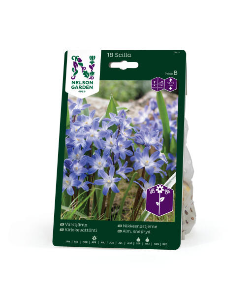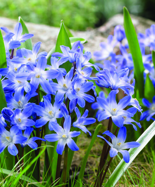 Vårstjärnan är en liten vårblomma som verkligen strålar som en stjärna i vårsolen. Blommorna är blå med ett stort vitt öga. Samplantera gärna med porslinshyacint och rysk blåstjärna för att skapa blomstermattor i skiftande blå och vita nyanser.